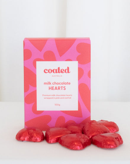 Chocolate Hearts made with premium, creamy milk chocolate and wrapped colourful foil.