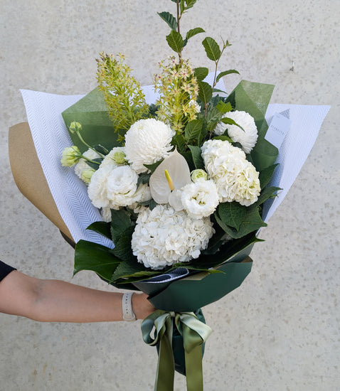 Please note that flower varieties may vary based on seasonal and market availability. To ensure the highest quality and freshness, our florists may substitute certain blooms with equally beautiful alternatives while maintaining the overall style, colour palette, and value of your chosen bouquet.