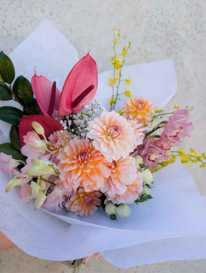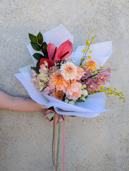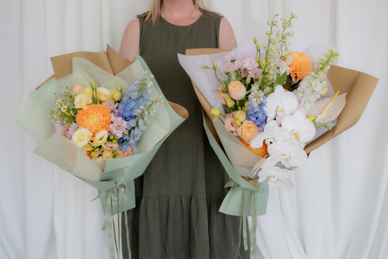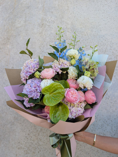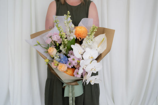 In a size of your choosing, receive a beautifully gift wrapped, one of a kind bouquet of fresh flowers in a soft colour scheme. This is a florist's choice arrangement, photos are a guide of what you can expect. Actual flowers will be based on seasonality and market availability.